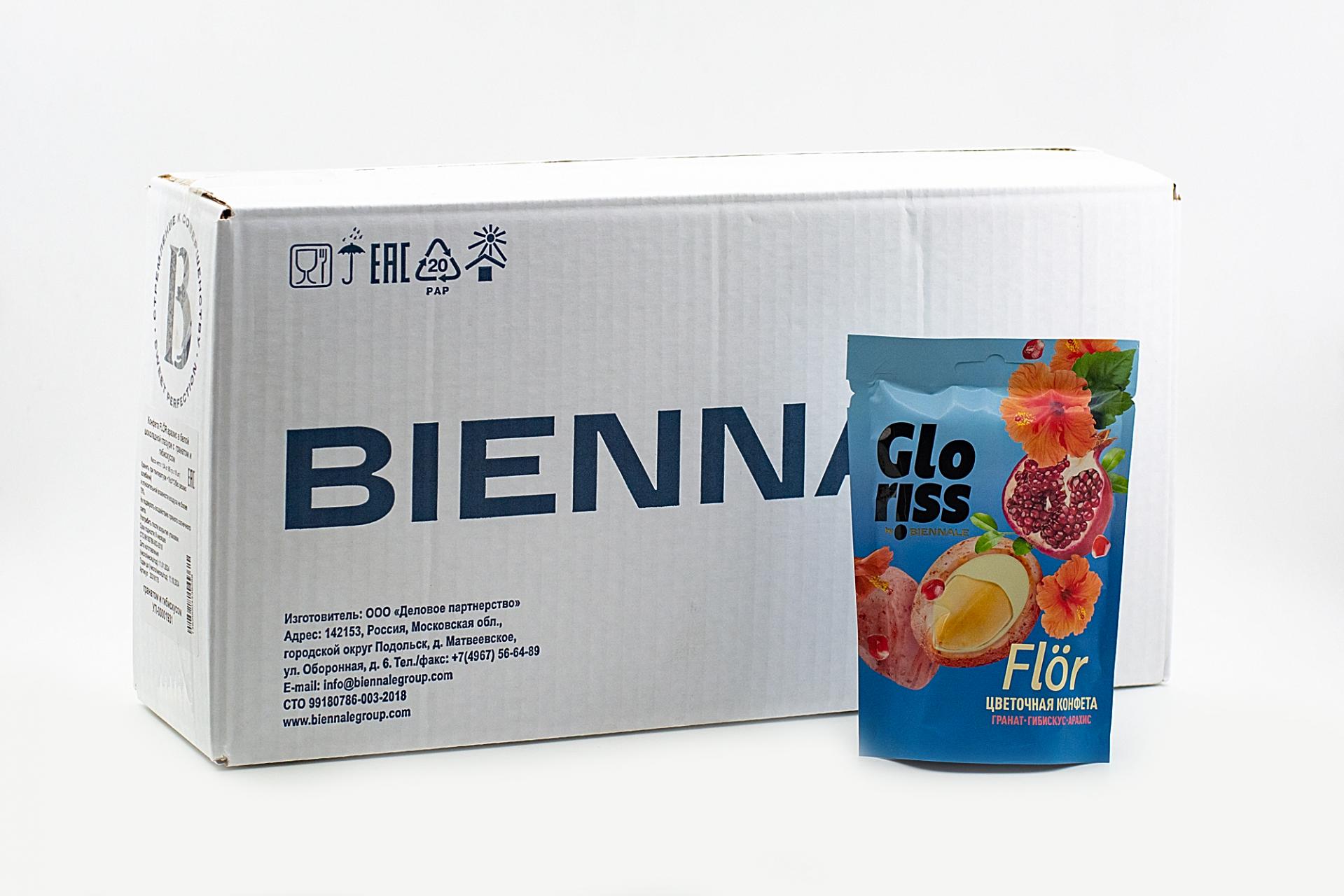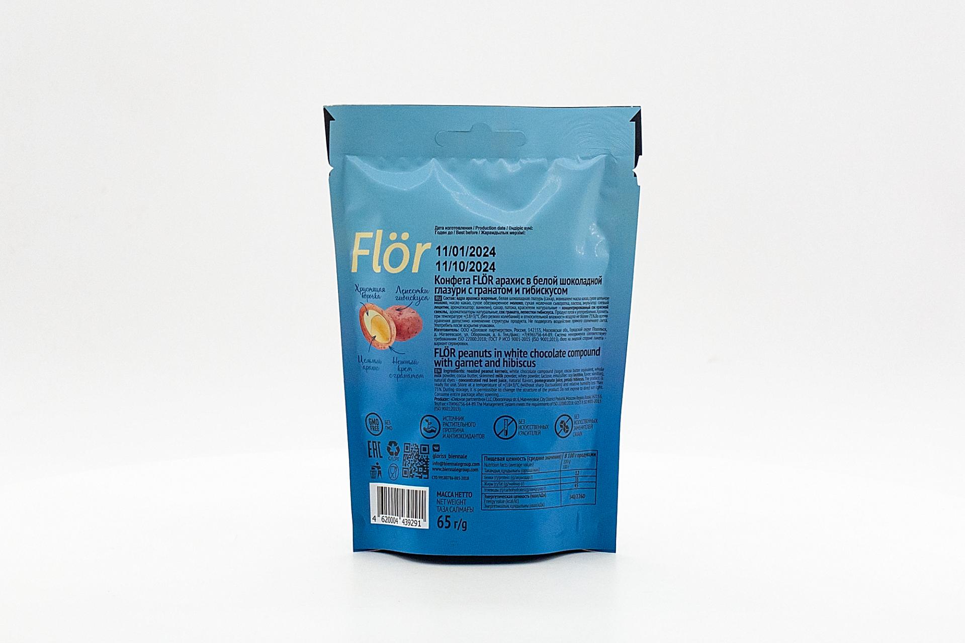 Арахис в белой шоколадной глазури Gloriss by Biennale Flor с гранатом и гибискусом 65 гр93,60 руб. за штуку (в упак. 16 шт.) |
