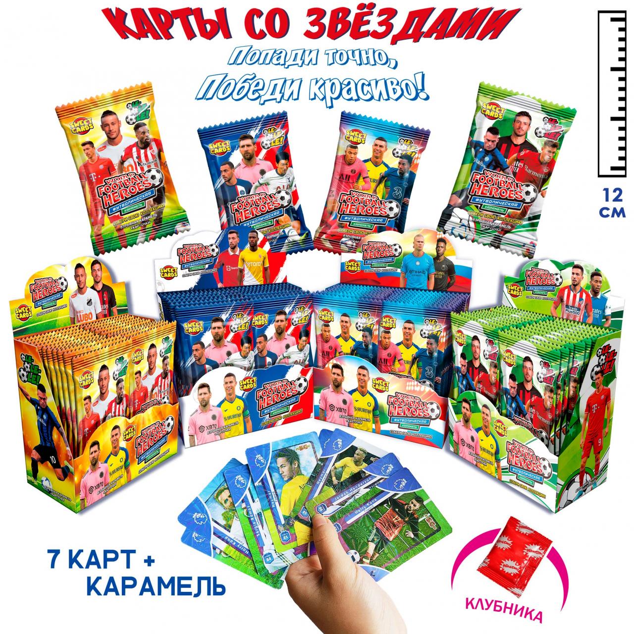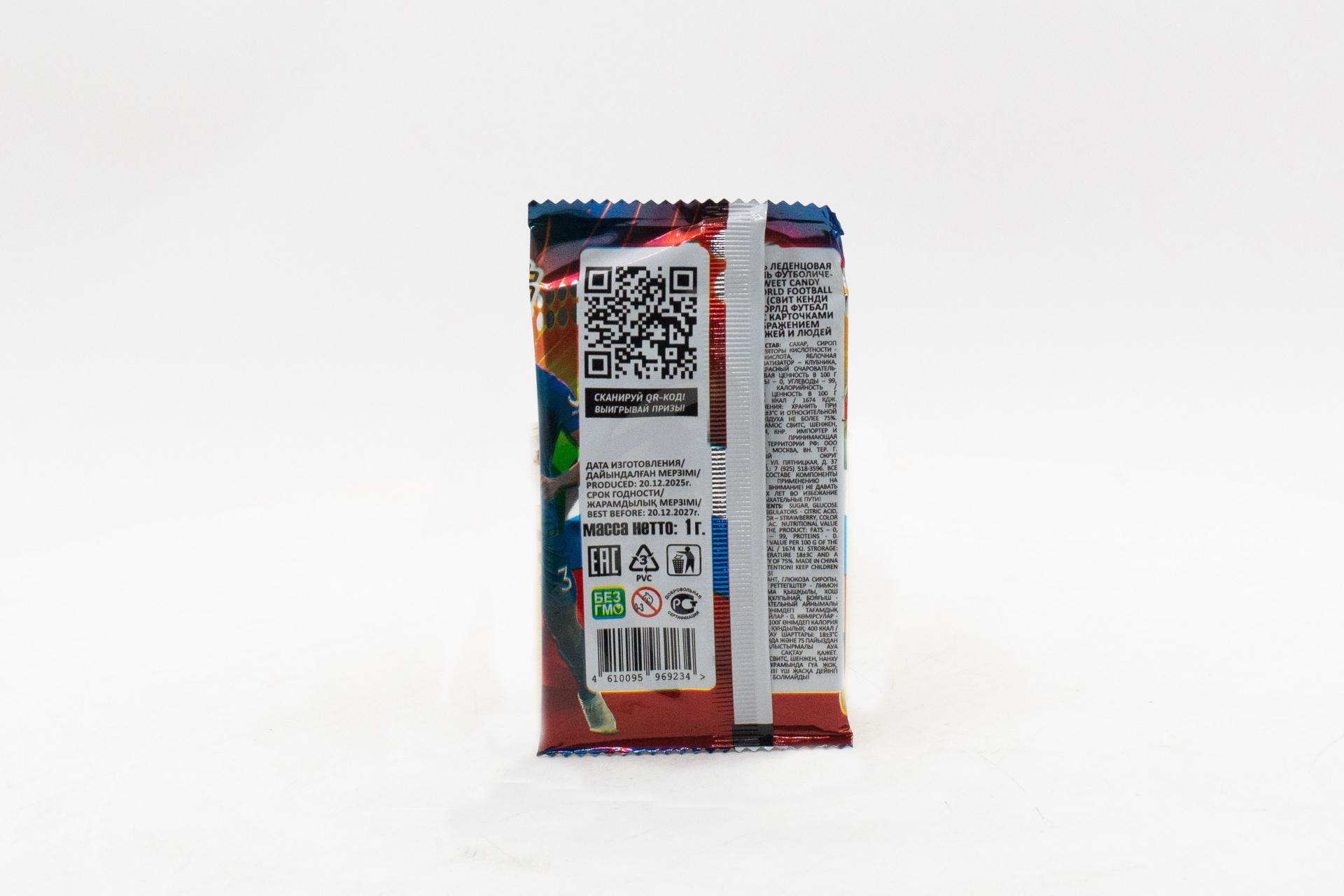 Карамель леденцовая с карточками с изображением персонажей и людей Sweet Candy Cards World football heroes (Китай) 1г14,43 руб. за штуку (в упак. 24 шт.) |