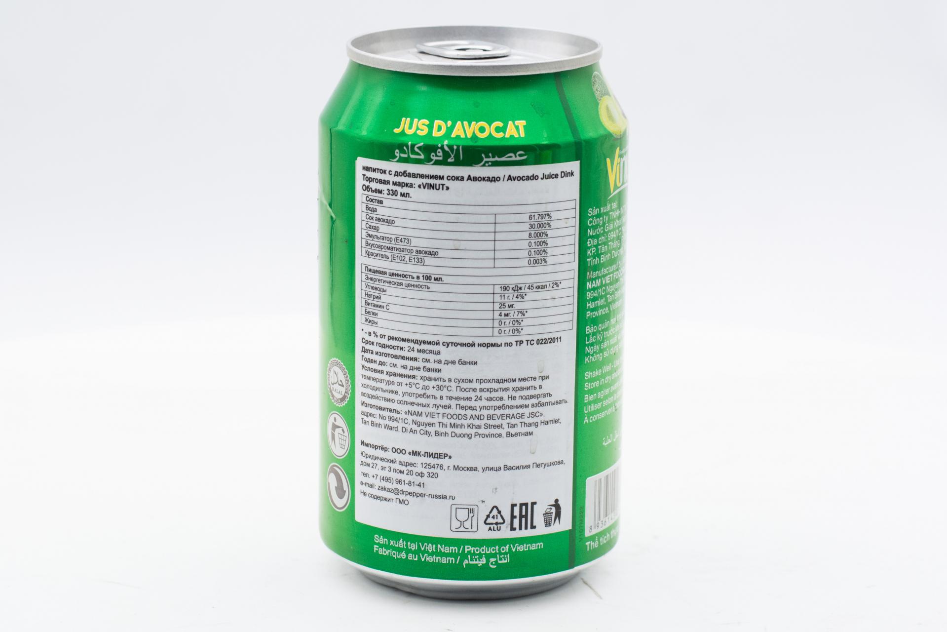 Напиток сокосодержащий Vinut с соком Авокадо 330мл49,99 руб. за штуку (в упак. 24 шт.) |